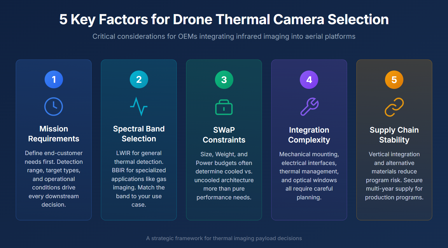 Selecting and integrating a drone thermal imaging camera requires OEMs to balance mission requirements, platform constraints, and long-term supply chain considerations.