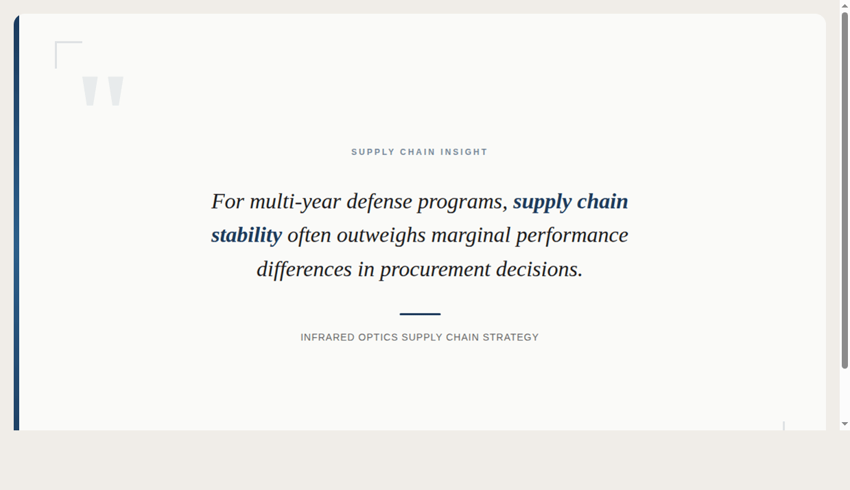 For OEMs and system integrators, the infrared optics supply chain has become a strategic vulnerability that demands immediate attention.